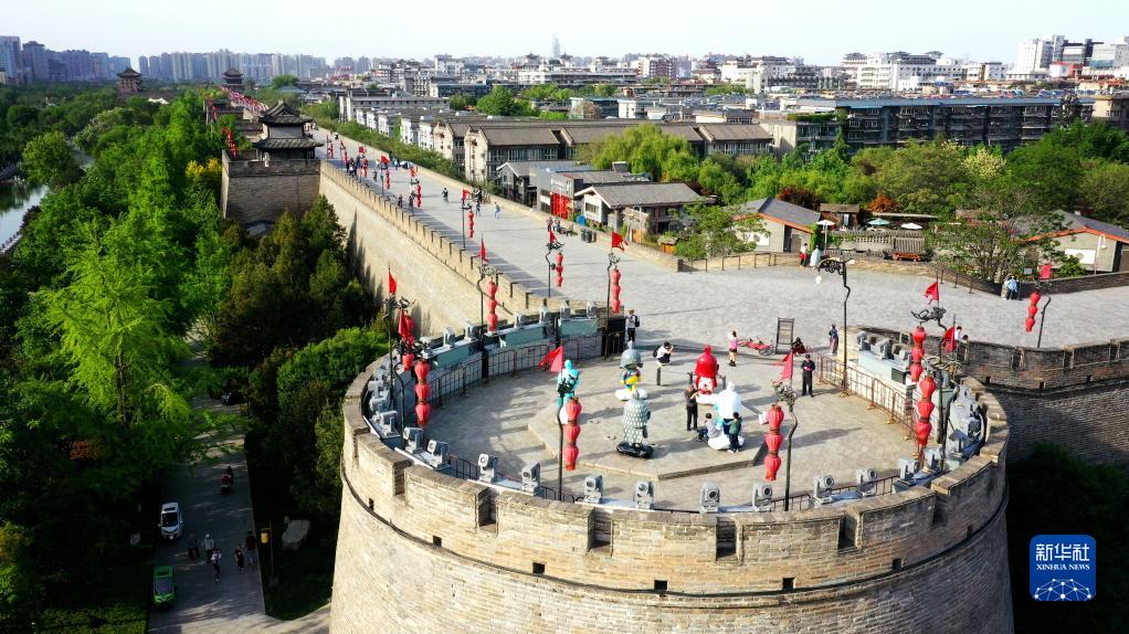 西安城墻西南城角(4月15日攝,無(wú)人機照片)。