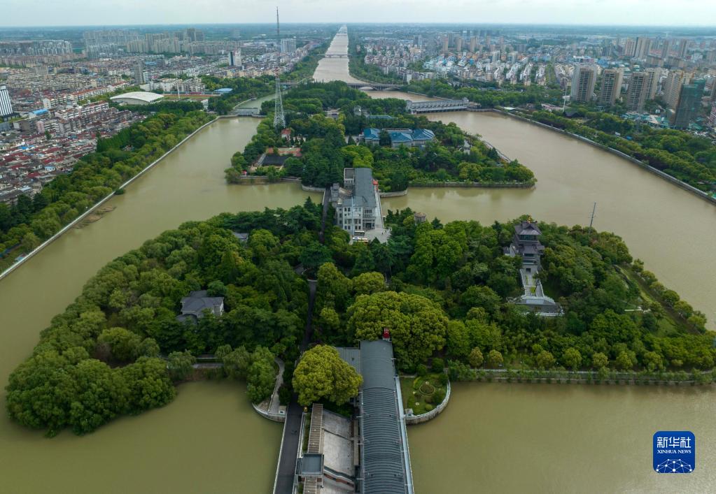 5月7日在江蘇省揚州市拍攝的江都水利樞紐(無(wú)人機照片)。