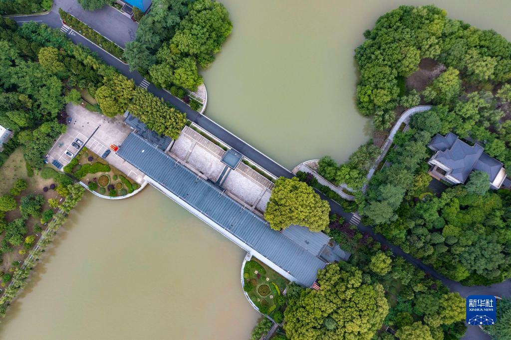 5月7日在江蘇省揚州市拍攝的江都水利樞紐(無(wú)人機照片)。