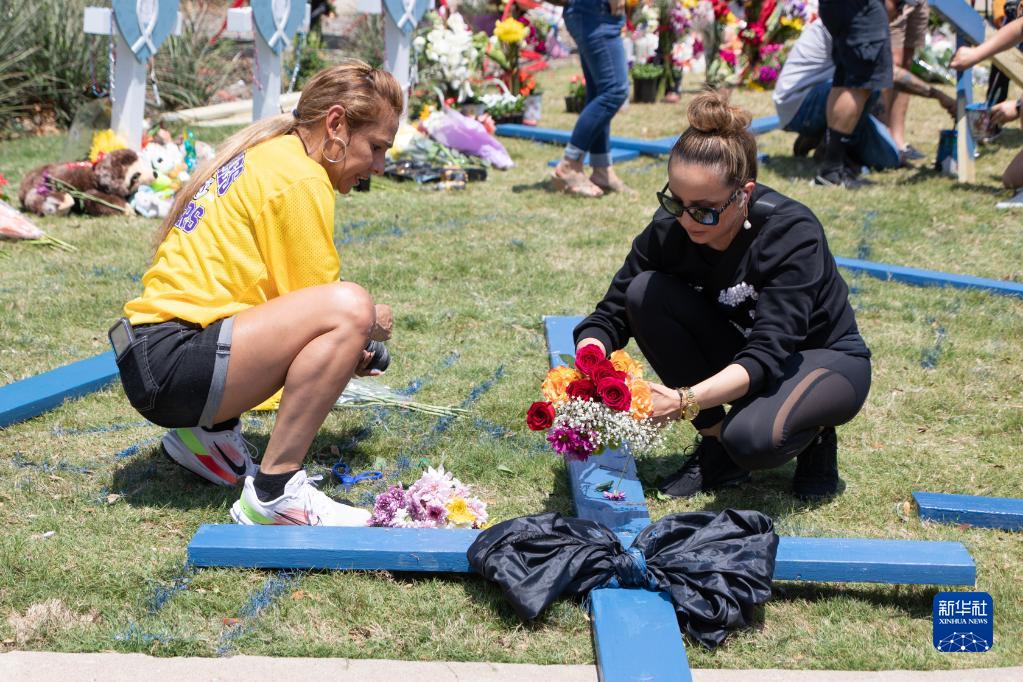 5月8日,在美國得克薩斯州達拉斯以北城鎮艾倫,人們在購物中心槍擊事件現場(chǎng)附近悼念受害者。