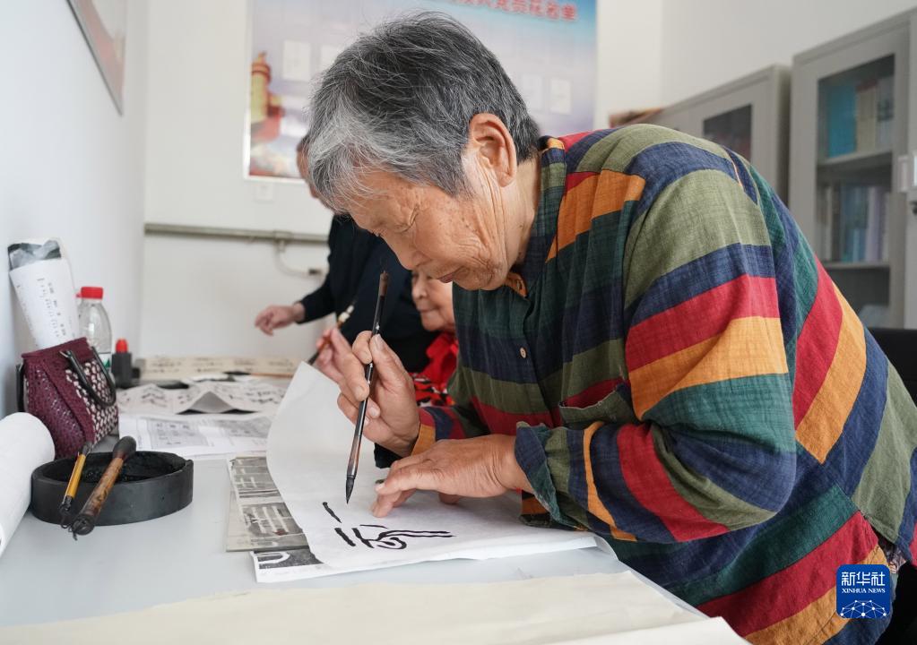 5月9日,老人在北京市平谷區西樊各莊村“養老驛站”練習書(shū)法。