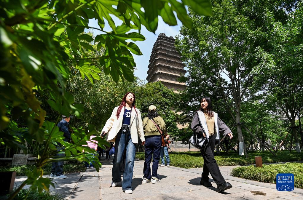 游客在西安薦福寺內參觀(guān)游覽(5月8日攝)。