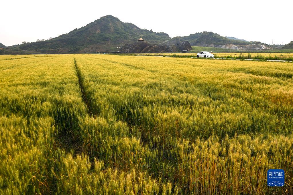 5月8日拍攝的德清縣乾元鎮城北村“稻頌乾元”鄉村景點(diǎn)的千畝麥田。