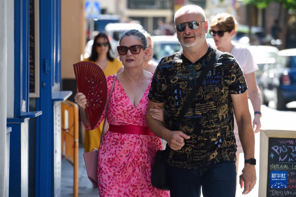 5月7日,人們走過(guò)西班牙塞維利亞街頭。