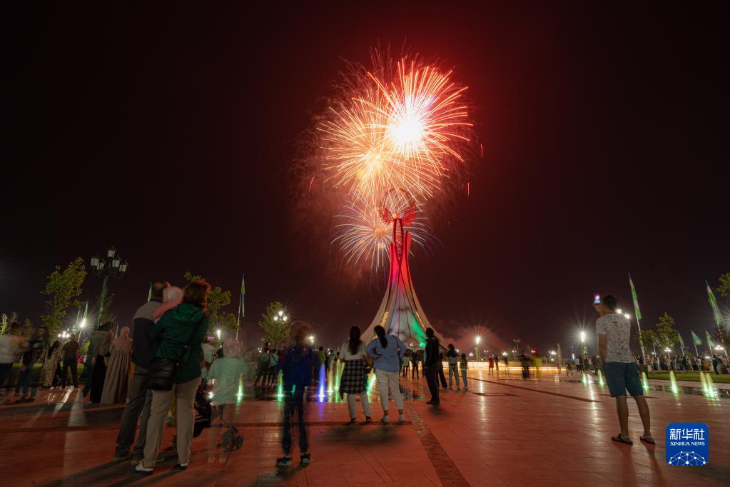 5月9日,煙花在烏茲別克斯坦首都塔什干上空綻放,慶?!凹o念和榮譽(yù)日”。