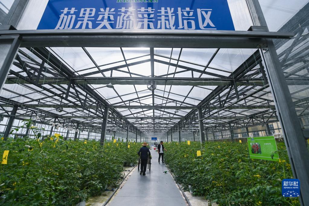 這是位于德清縣洛舍鎮東衡村的魚(yú)菜共生農業(yè)園(5月8日攝)。整個(gè)魚(yú)菜共生項目占地10000平方米,通過(guò)智能化魚(yú)菜共生養殖系統產(chǎn)出菠菜、苦苣、冰草、小番茄、西瓜、甜瓜等蔬果以及澳洲寶石鱸魚(yú)等中高端淡水魚(yú)。