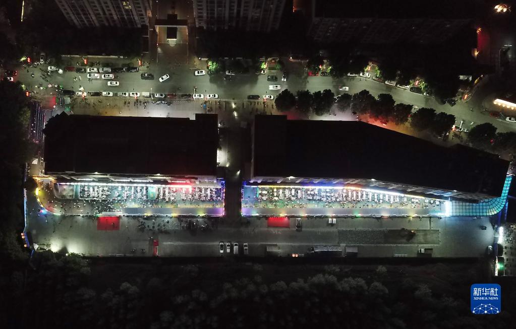 在淄博市張店區林澤街,眾多食客在品嘗燒烤(5月8日攝,無(wú)人機照片)。