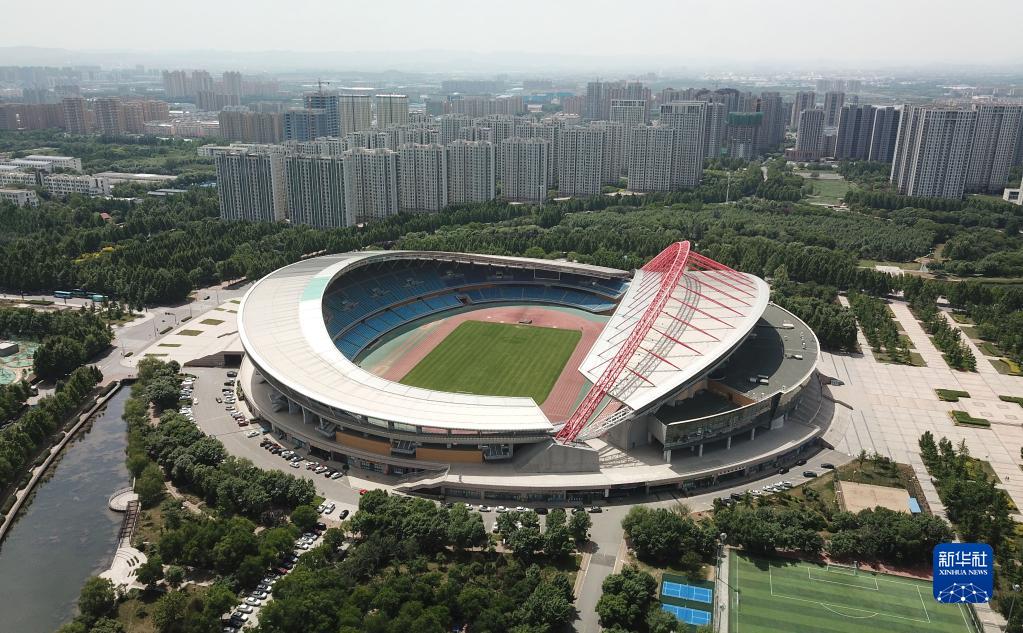 位于淄博市張店區的淄博市體育中心體育場(chǎng)(5月8日攝,無(wú)人機照片)。