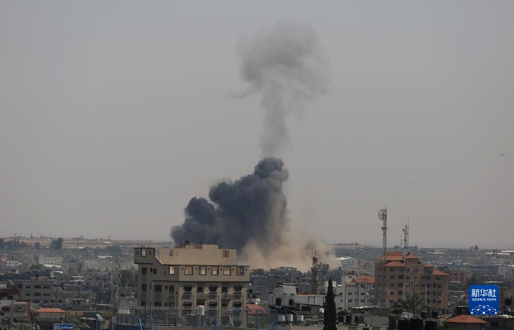 5月10日,在加沙地帶城市拉法,以色列軍隊的空襲造成爆炸和濃煙。
