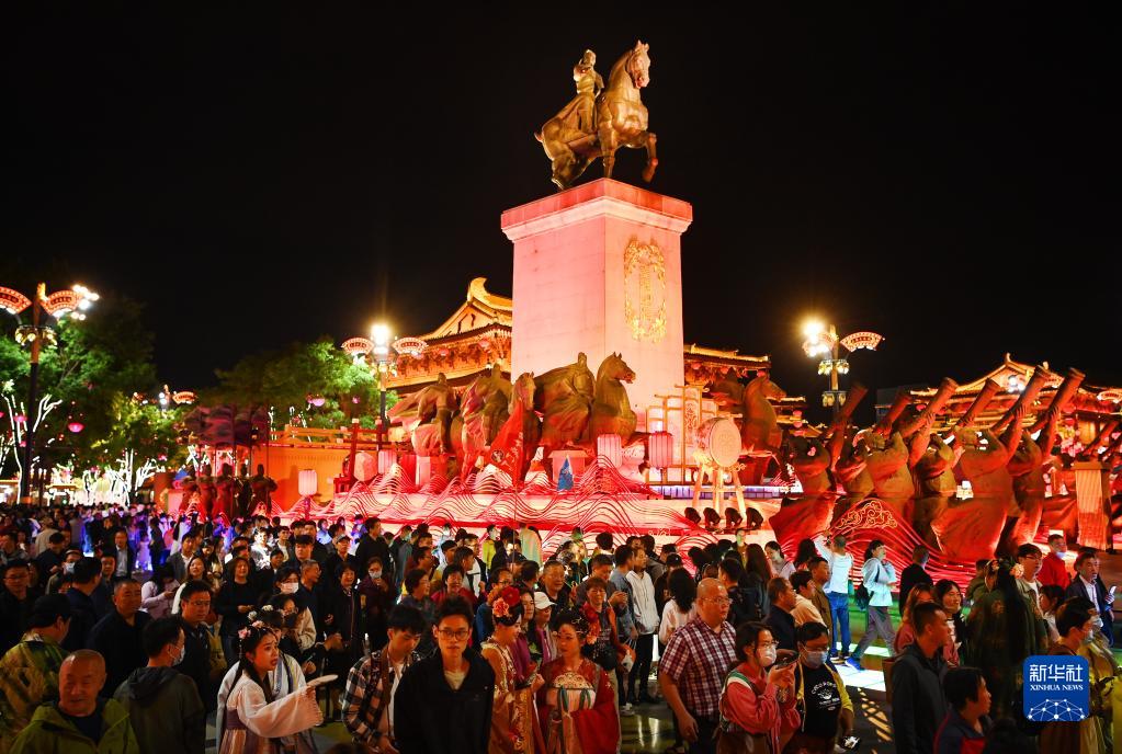 游客在西安大唐不夜城游覽(5月8日攝)。