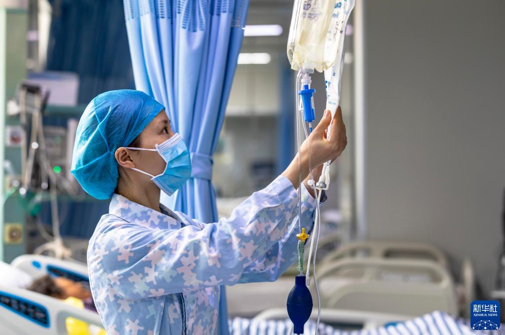 5月11日,在貴州省黔西市人民醫院ICU病房,一名護士在忙碌。