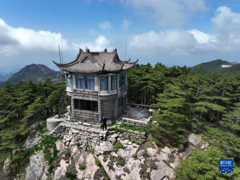 這是5月8日拍攝的黃山風(fēng)景區平天矼瞭望哨(無(wú)人機照片)。