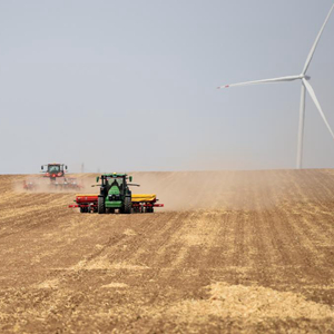 5月11日,呼倫貝爾農墾大河灣農牧場(chǎng)有限公司工人操作播種機械進(jìn)行大豆播種作業(yè)。