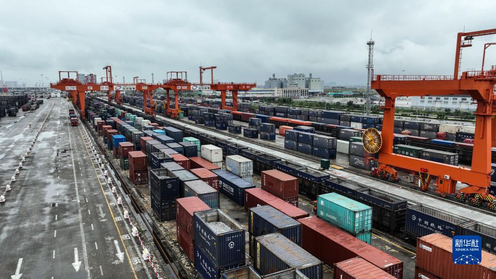 5月11日拍攝的廣西欽州鐵路集裝箱中心站(無(wú)人機照片)。
