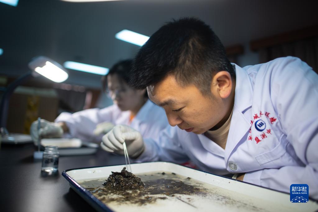 5月11日,監測人員在船內進(jìn)行底棲動(dòng)物樣品挑揀。