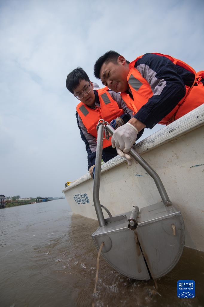 5月11日,監測人員在武漢漢南區江段進(jìn)行底棲動(dòng)物樣品采集。