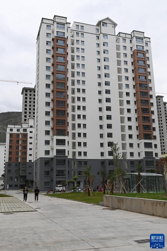 這是5月10日在甘肅省隴南市武都區拍攝的部分生態(tài)及地質(zhì)災害避險搬遷戶(hù)入住的兩水鎮安置點(diǎn)小區內景象。