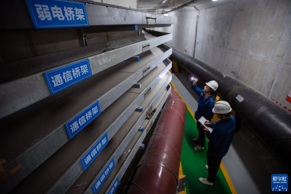 5月12日,中建十堰管廊公司運維人員在紫霄大道管廊內巡檢管線(xiàn)橋架。