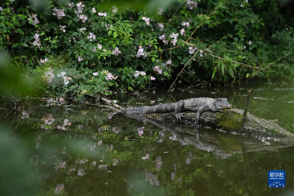 5月11日,在安徽揚子鱷國家級自然保護區南陵長(cháng)樂(lè )片區及周邊區域,調查人員在痕跡調查時(shí)發(fā)現一只揚子鱷。