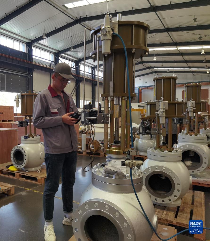 5月12日,位于山東濟寧鄒城市北宿鎮的艾坦姆流體控制技術(shù)(山東)有限公司,技術(shù)人員在車(chē)間對流體控制閥產(chǎn)品進(jìn)行裝箱前的準備工作。