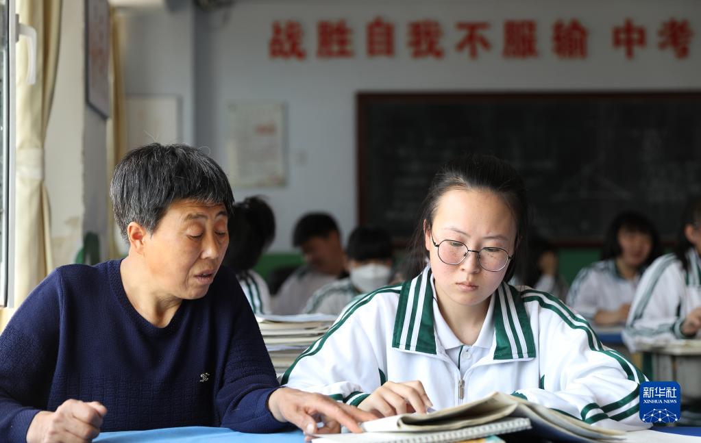 張連琴(左)和女兒李昕偉在教室內聽(tīng)課(5月8日攝)。