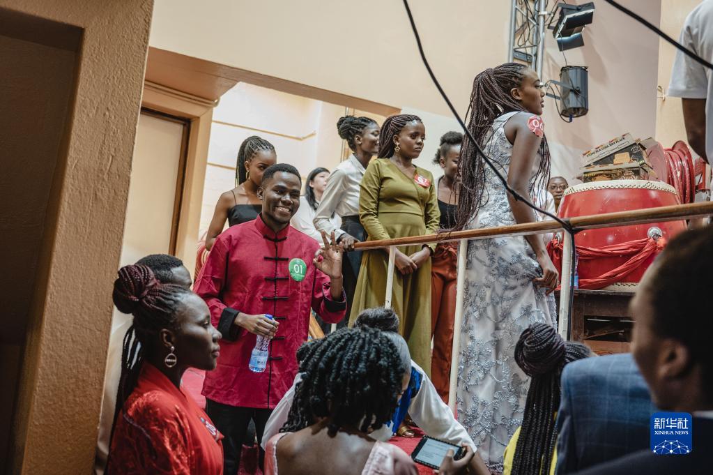 5月12日,在肯尼亞內羅畢大學(xué),漢語(yǔ)橋參賽選手在后臺交流。