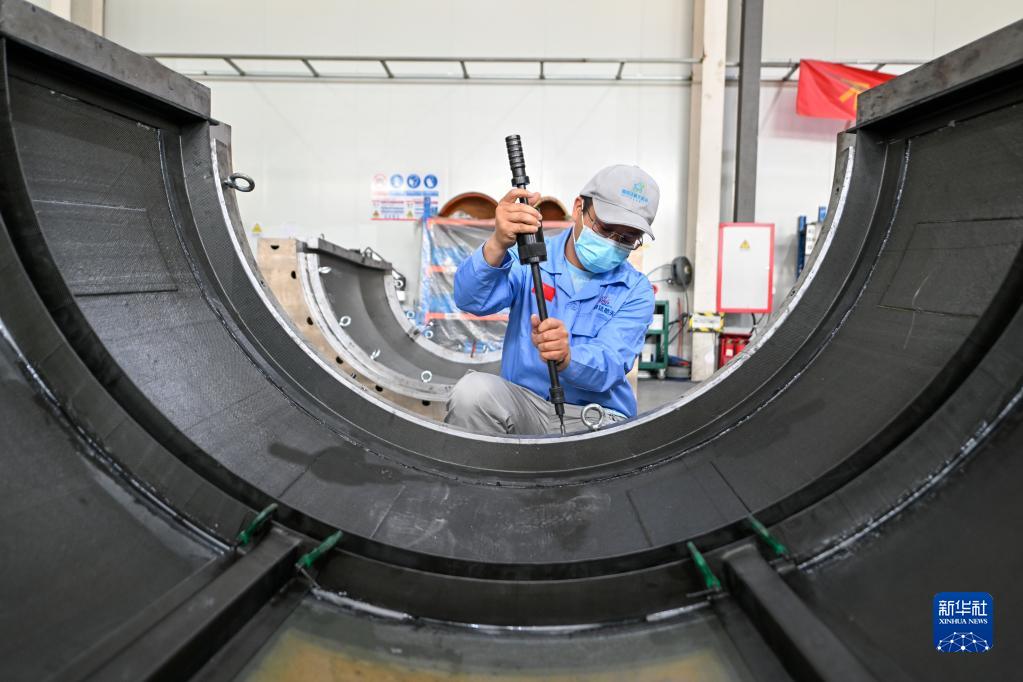 5月12日,在天津愛(ài)思達航天科技股份有限公司,工人生產(chǎn)航空航天類(lèi)部件。