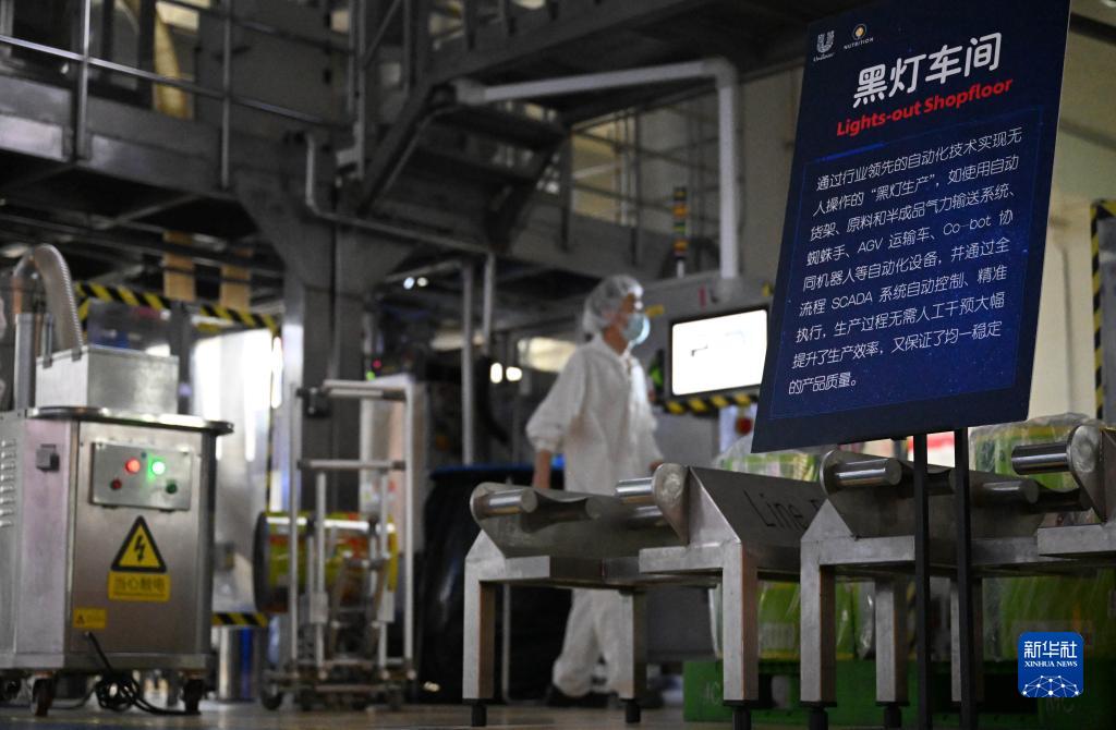 這是5月11日拍攝的聯(lián)合利華天津食品工廠(chǎng)黑燈車(chē)間。