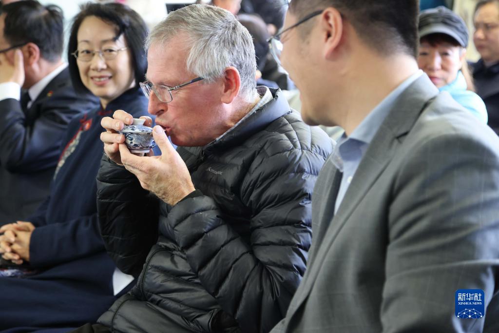 5月13日,在新西蘭克賴(lài)斯特徹奇舉行的“茶和天下·雅集”系列活動(dòng)走進(jìn)路易·艾黎中文學(xué)?;顒?dòng)上,當地市民品嘗中國茶。新華社發(fā)(孟韜 攝)