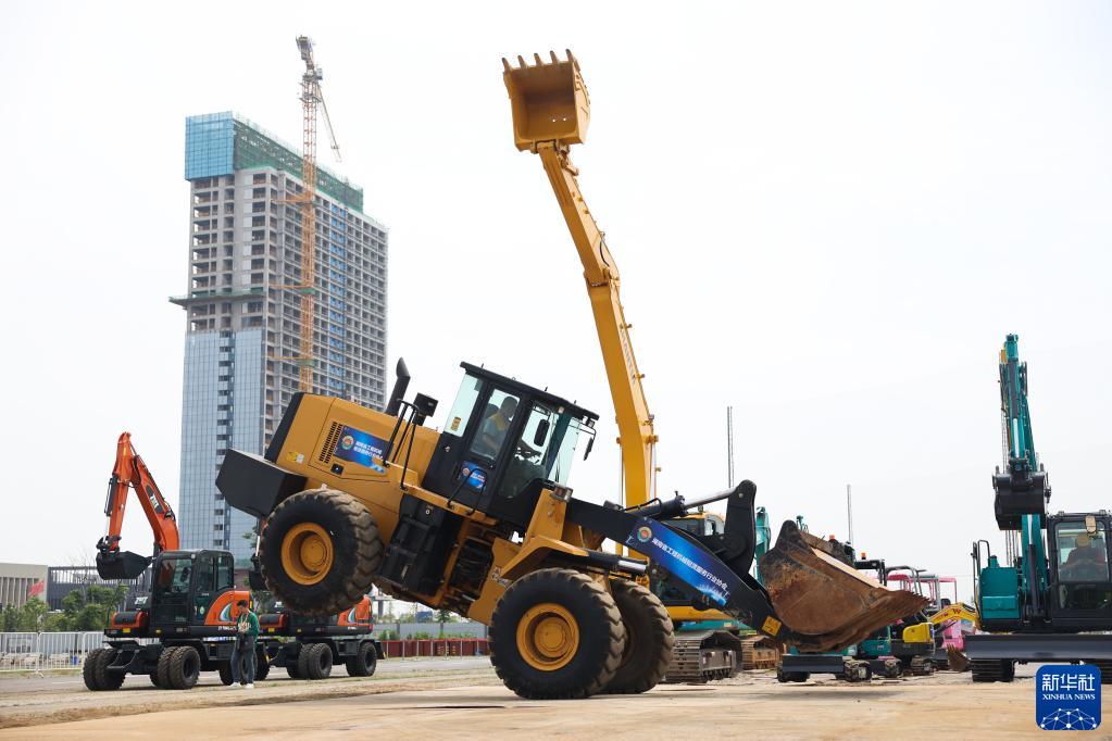 5月13日,在長(cháng)沙國際工程機械展覽會(huì )上,機手駕駛裝載機表演。