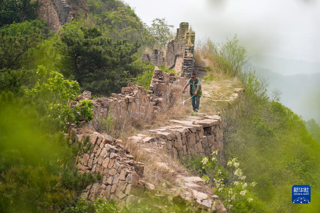 5月13日,趙春生在前后杖子段長(cháng)城上清理雜草。