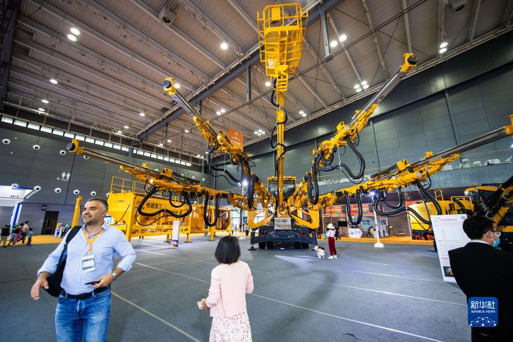 5月15日,在長(cháng)沙國際會(huì )展中心,觀(guān)眾在參觀(guān)展出的工程機械設備。