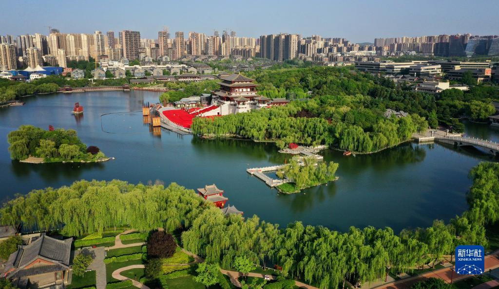 西安大唐芙蓉園(4月25日攝,無(wú)人機照片)。