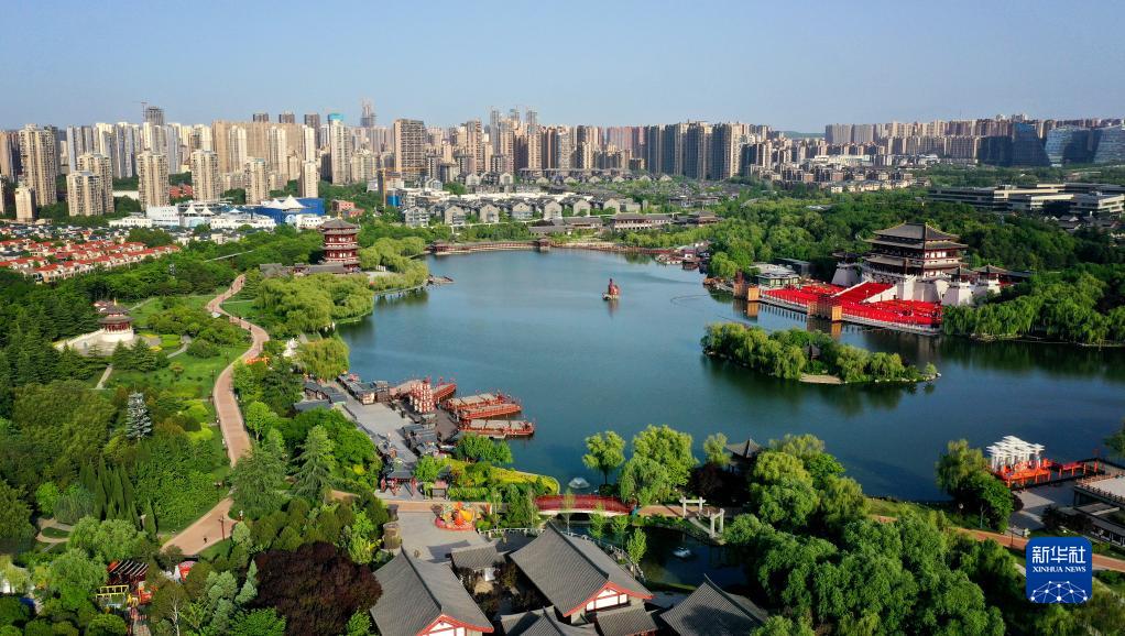 西安大唐芙蓉園(4月25日攝,無(wú)人機照片)。