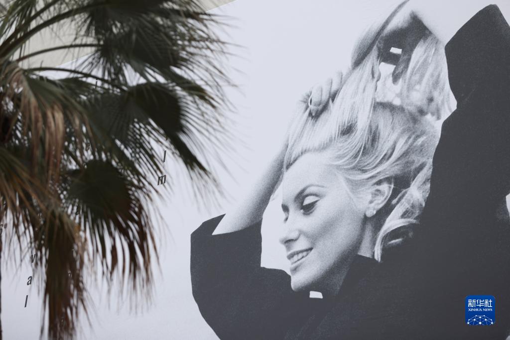 這是5月15日在法國南部海濱城市戛納電影宮外拍攝的戛納國際電影節海報。