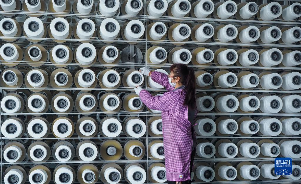 5月15日,山東省青島市即墨區段泊嵐鎮一家篷布生產(chǎn)企業(yè)的工人在織布車(chē)間生產(chǎn)出口到海外市場(chǎng)的產(chǎn)品。