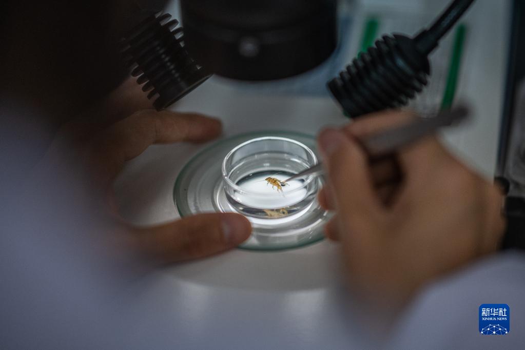 5月15日,在長(cháng)江流域生態(tài)環(huán)境監督管理局實(shí)驗室,監測人員對采集到的底棲動(dòng)物樣品進(jìn)行鑒定。
