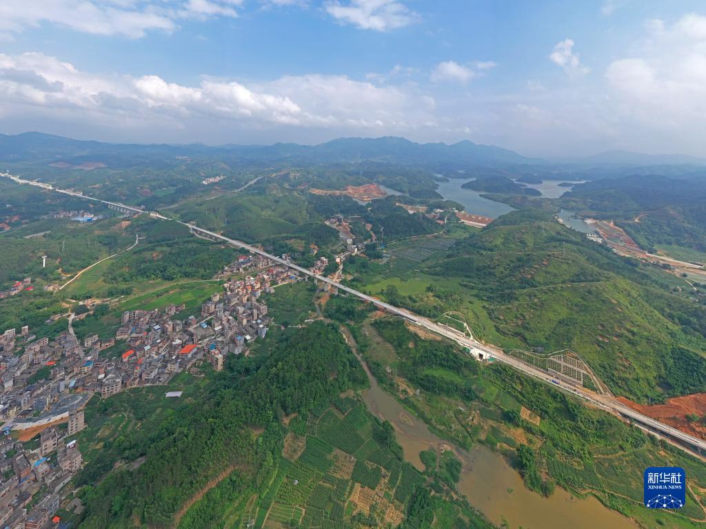這是5月16日在中鐵五局南玉鐵路6標段拍攝的施工現場(chǎng)(無(wú)人機照片)。