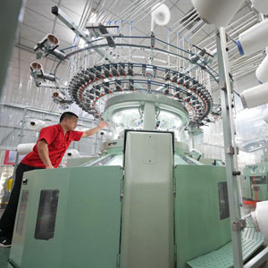 5月15日,在青島市即墨區即發(fā)集團有限公司生產(chǎn)車(chē)間,工人在檢測紗線(xiàn)張力。