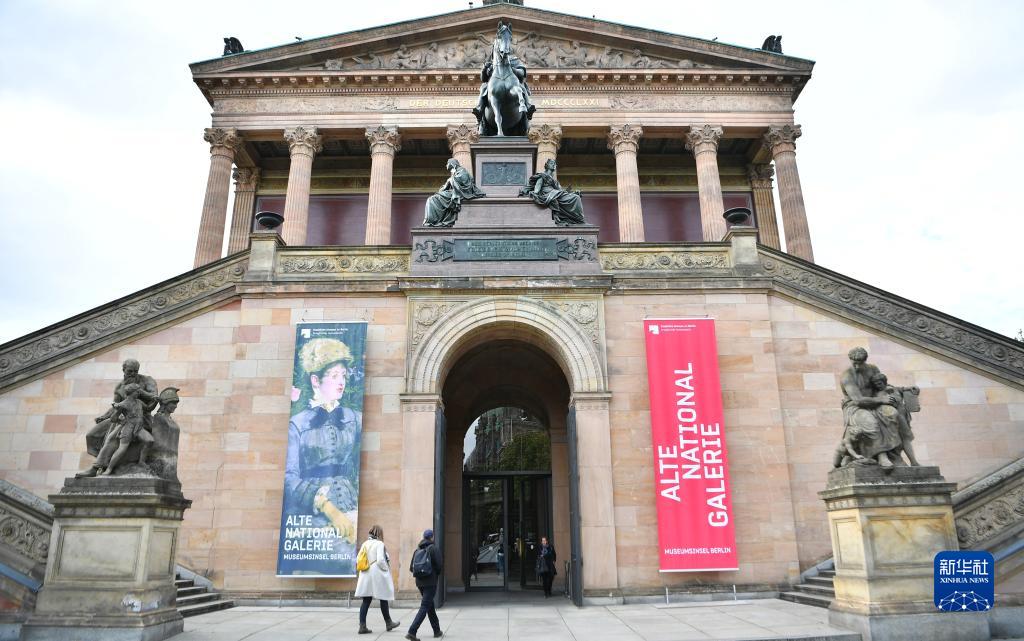 5月16日,在德國柏林博物館島,人們參觀(guān)老國家美術(shù)館。