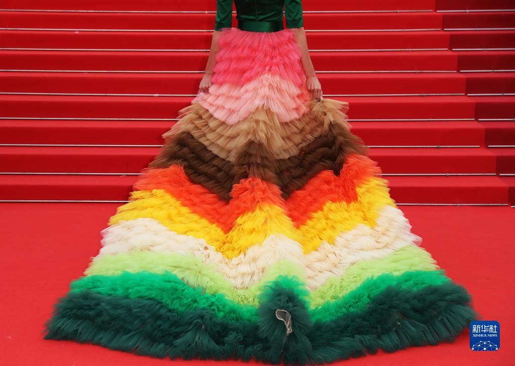 5月16日,在法國戛納舉行的第76屆戛納國際電影節上,一名嘉賓亮相紅毯。
