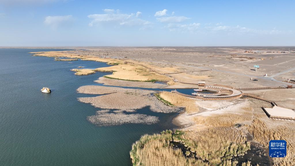 5月17日在內蒙古阿拉善盟額濟納旗居延海拍攝的風(fēng)光(無(wú)人機照片)。