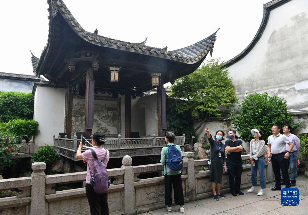 游客在位于福州三坊七巷歷史文化街區的全國重點(diǎn)文物保護單位水榭戲臺參觀(guān)(5月16日攝)。