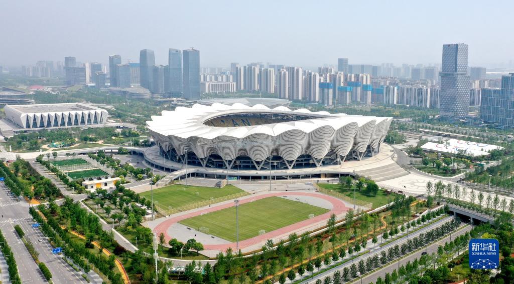 位于西安國際港務(wù)區的西安奧體中心(4月26日攝,無(wú)人機照片)。