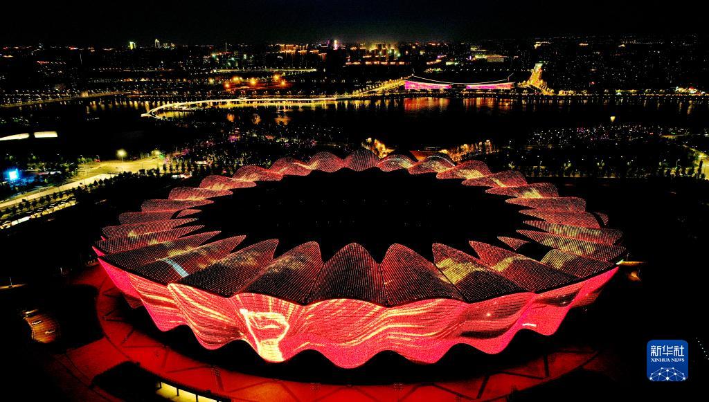 位于西安國際港務(wù)區的西安奧體中心(5月1日攝,無(wú)人機照片)。