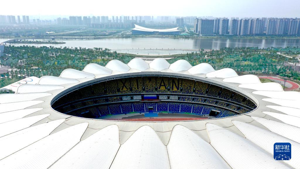 位于西安國際港務(wù)區的西安奧體中心(4月26日攝,無(wú)人機照片)。