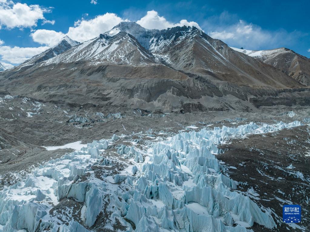 這是中絨布冰川的冰塔林(5月15日攝,無(wú)人機照片)。