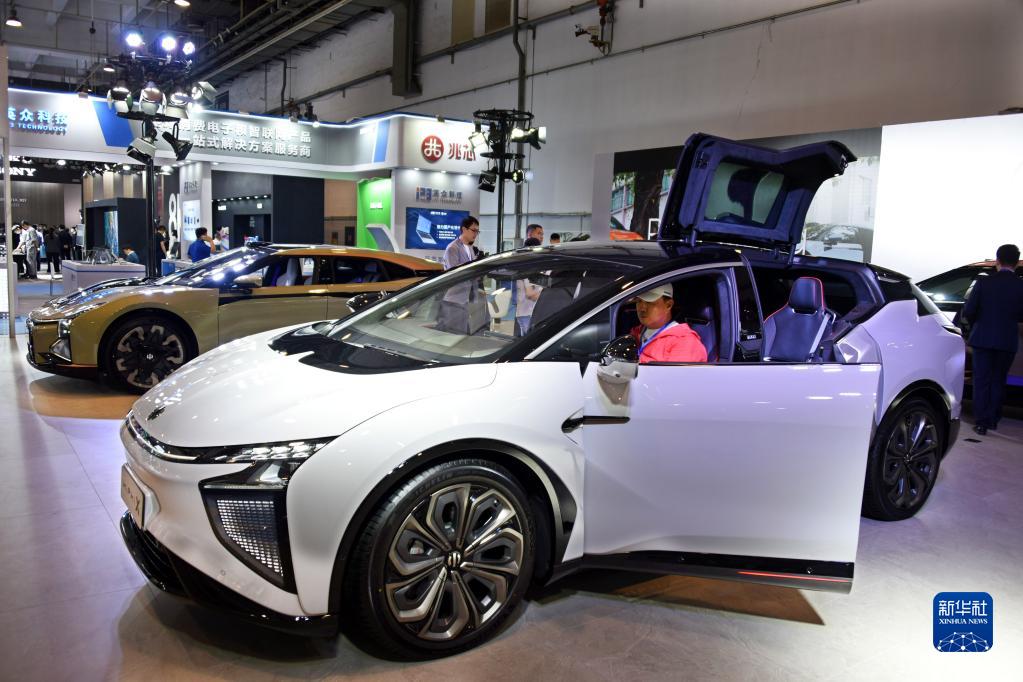 5月17日,參觀(guān)者在展會(huì )上了解一款具備“智慧出行”功能的汽車(chē)。
