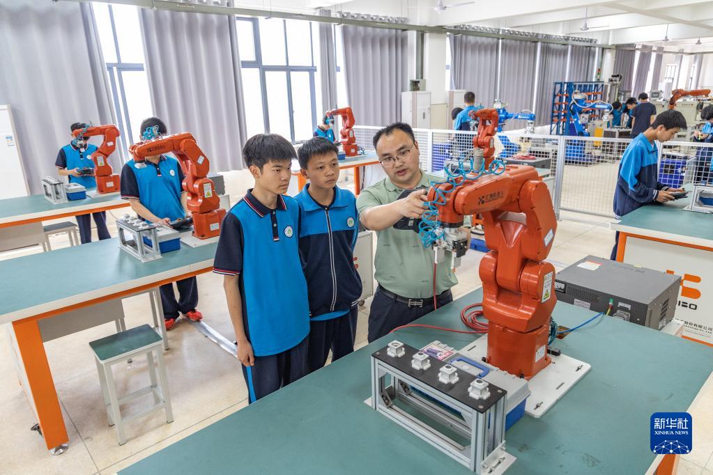 5月17日,在重慶永川職教中心,老師在實(shí)訓室指導學(xué)生。