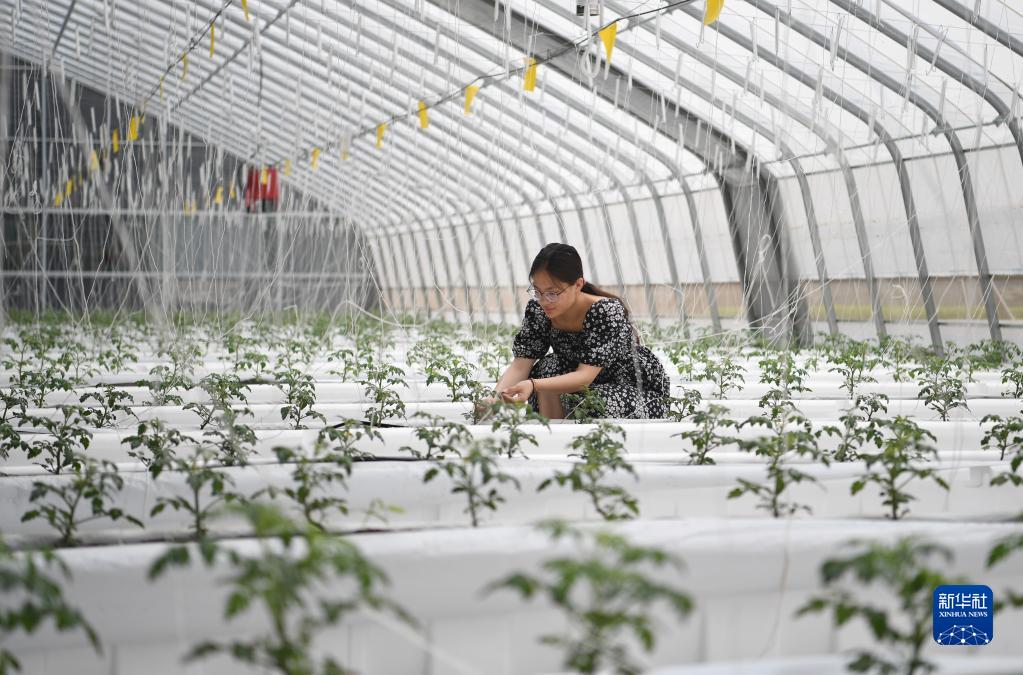 5月17日,饒陽(yáng)縣大尹村鎮萬(wàn)畝蔬菜標準化種植基地工作人員在設施溫棚查看西紅柿苗生長(cháng)情況。